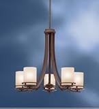 Hendrik Six-Light Chandelier. Named after the renowned Dutch architect Hendrik Berlage, our Hendrik Lighting Collection is a gorgeous selection of contemporary fixtures that honor the man known as the "Father of Modern Architecture." The Hendrik Collection is a synthesis of modern and traditional styles - classic lines are enhanced with updated style elements to complement a variety of environments. The oval-shaped Six-Light Chandelier works well in foyers, dining rooms, kitchens and nooks. Six lights offer a balanced design and plenty of ambiance. Olde Bronze finish features light umber etched glass; Brushed Nickel finish features satin-etched opal glass. Available Finishes Olde Bronze Brushed Nickel Size 36" x 18" x 23"H Takes six 100W max bulbs Shipping Allow 2-3 weeks delivery
