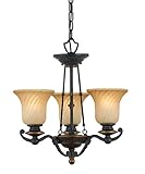 OnSale Quoizel GE5003SE Geneva 3-Light Chandelier with Twisted Amber Scavo Glass, Stonehedge